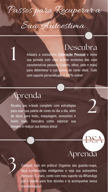 Ainda esta em duvida se este produto é pra você? Continue lendo... estamos prestes a descobrir as cores que mais te favorecem e criar estrategias que vão mudar sua confiança na hora de se vestir e recuperar sua autoestima através da auto imagem!