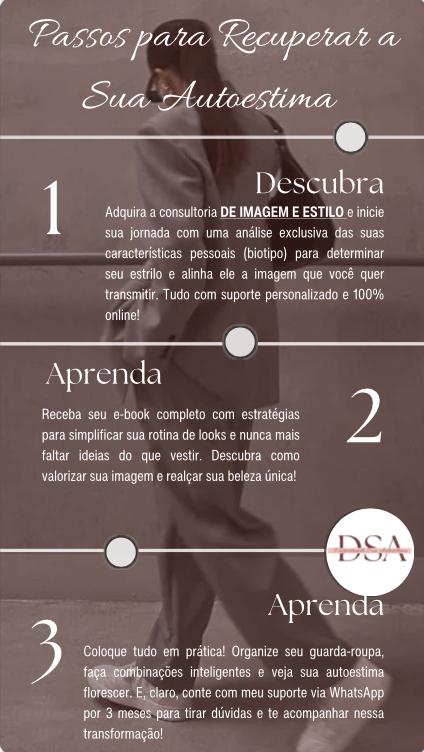 A consultoria ajuda a aumentar a autoconfiança, economizar tempo e dinheiro na hora de comprar roupas e garantir que você esteja sempre bem-vestida para diferentes ocasiões.